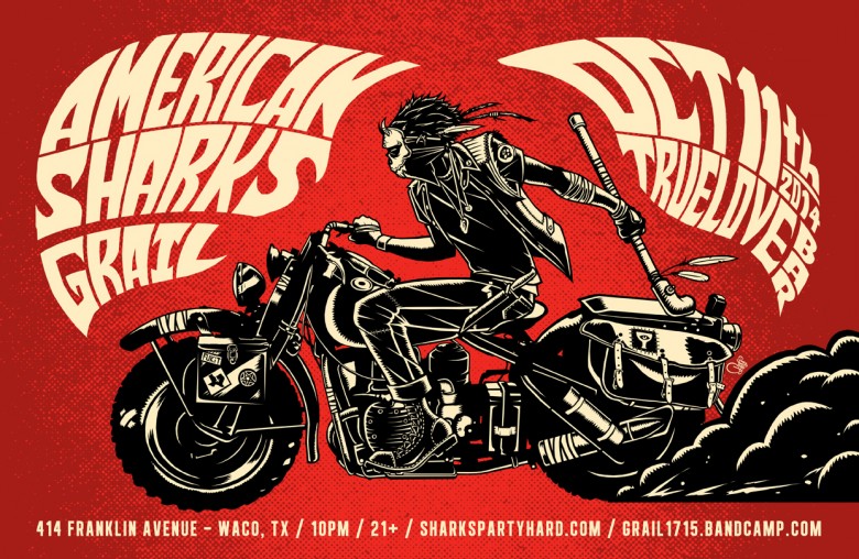 AMERICAN SHARKS!!!!!! I had the immense pleasure of putting this image together for a poster promoting their show (yeah, yeah, Grail is playing too…) at Truelove Bar in Waco TX. Consequently, after working intimately with reference photos of 1942 Military Harleys, now I really want one. I’ve ridden a motorcycle all of ONCE in my life, but I think I could get into it. Maybe. Probably not.